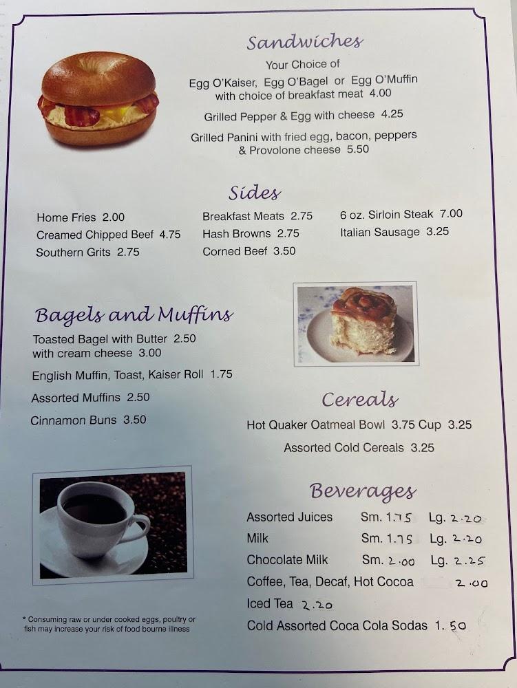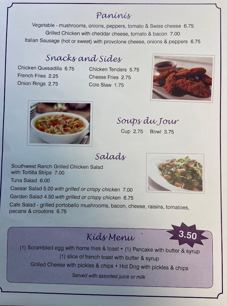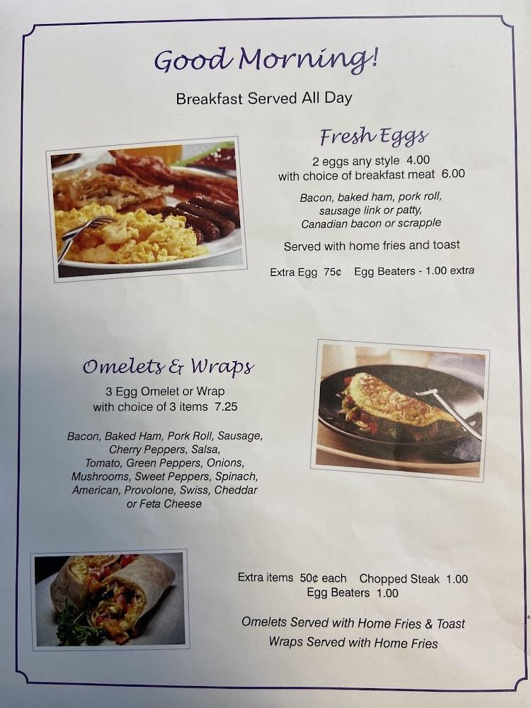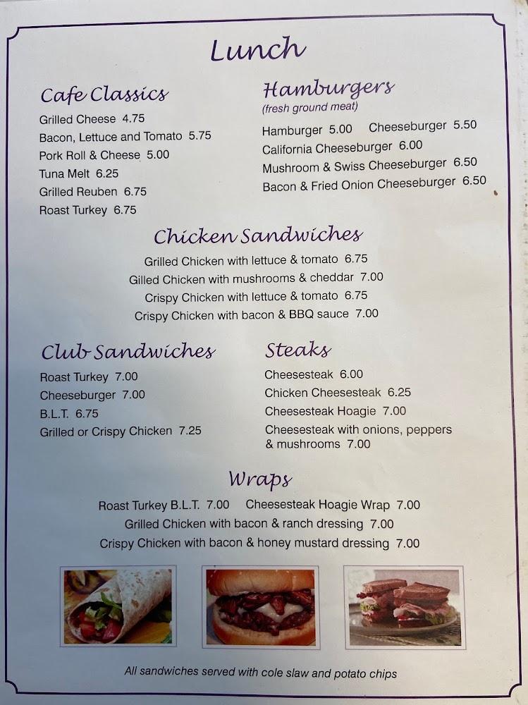 Violetwood Cafe's menu offers a delightful mix of breakfast and lunch items, featuring traditional dishes made with love. Menu highlights include breakfast sandwiches, diverse options for pancakes, and house specialties like scrapple.The average price of items around $5.50 makes it an affordable option for families.